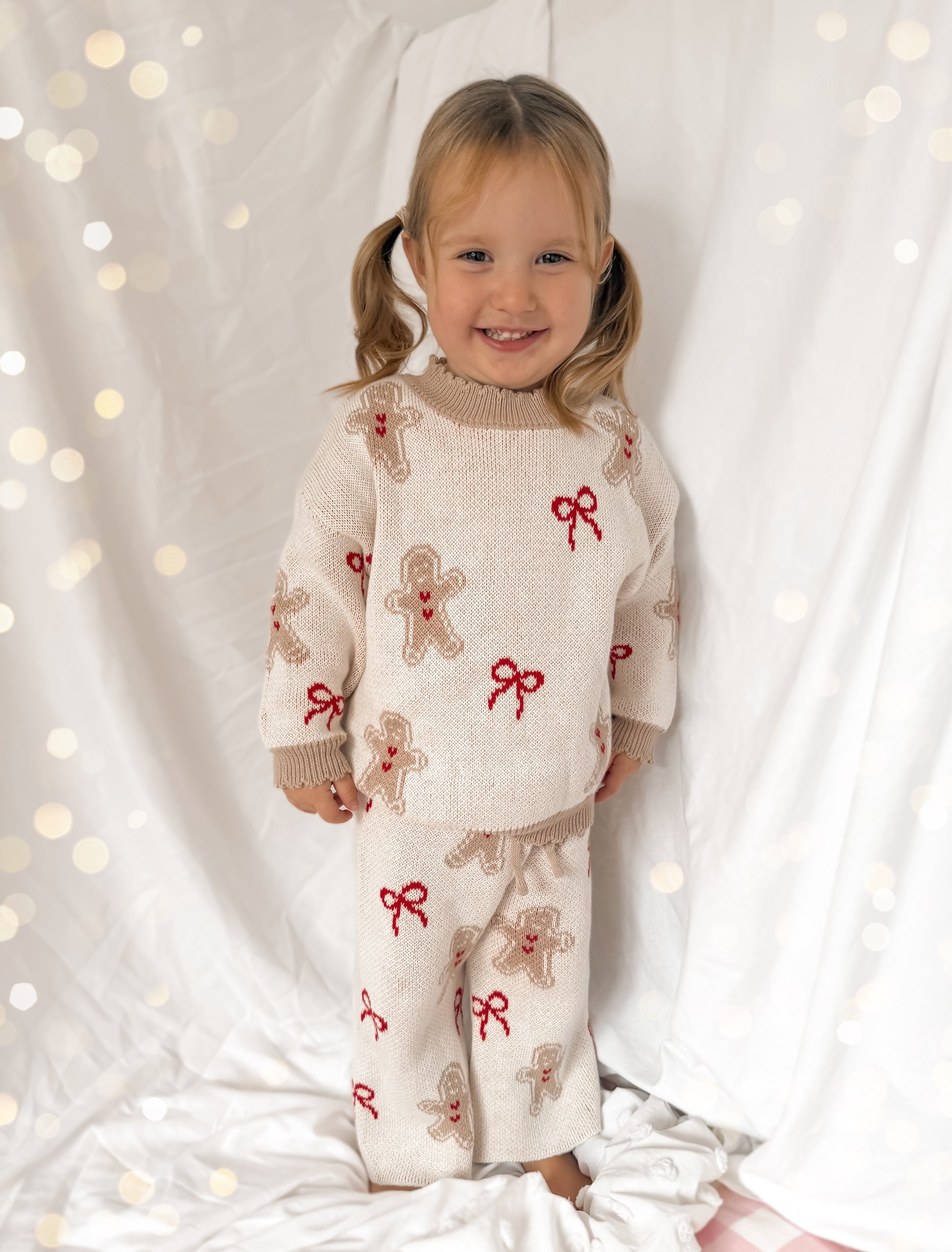 All pre orders will arrive to you by the end of November. A very limited amount of spare sets,labelled wrong size, have been added at a slightly discounted price. 4-5y sizing labelled 5-6y and 3-4y sizing labelled 4-5y. Your little darling's will look extra cute and cosy in our gingerbread bow set this Christmas! Made from 100% cotton❤️🦌 Dash to the check out to order our last few pieces before they're gone!✨